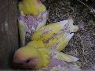 Je n'ai jamais vu ça chez les agapornis depuis mes premiers jeunes en 1984. :roll:
