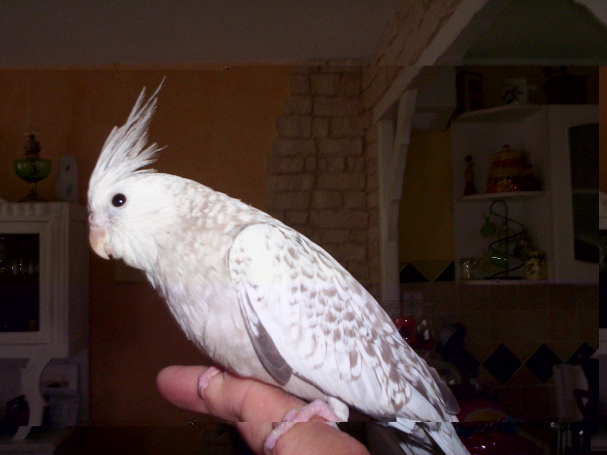 Dans ma volière communautaire j'ai 1 face blanche perlé :fem: (je mettrais la photo) mais comme je laisse les couples se former eux même je ne sais pas pour le moment qui seras l'élu de son coeurImage