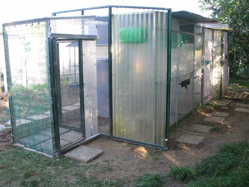 Les trois suivantes : notre volière "récup" et temporaire que nous avons monté en urgence lors du déménagement. J'avais en plus des box un peu partout dans le jardin...