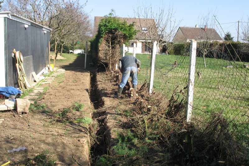 On ne fait pas toujours ce qu'on veut... :-( Mais bon, ça y est, la pelle mécanique vient ce samedi pour terminer l'arrachage de la haie et creuser les tranchées nécessaires aux fondations.