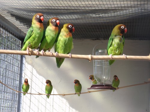 chez moi 2 couples de grand-alexandre couve sur 3 oeufs chacun, 1 couple de princesse de gall sur 5 oeufs , 1 couple de moustache a commencer a pondre actuellement 2 oeufs , 1 couple de youyou sur 3 oeufs , 1 couple de meyer sur 3 oeufs mirés fécondés tous les 3, pour les autres c'est trop tôt , les colliers vont au nid depuis une semaine ainsi que les port-lincoln , pour les autres couples c'est trop tôt