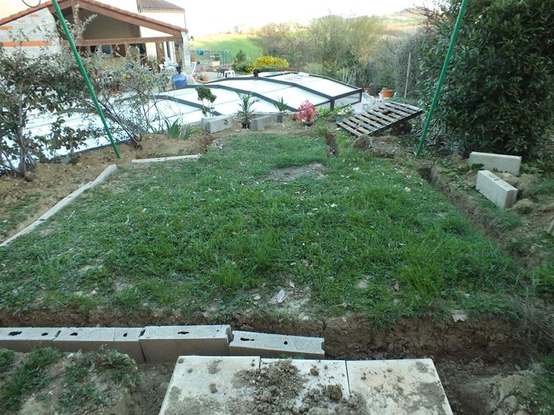 il me reste l'autre moitié a faire la bache qui n'est pas entérré sera recouverte par des dalle sur toute le pourtour