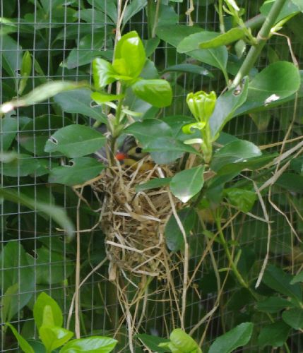 D’abord, une petite photo de quelqu’un qui construit et se cache dans son arbuste.