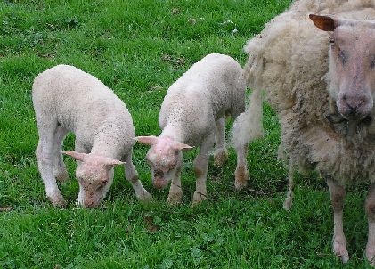 Petite photo prise le WE de Pâques dans le Calvados (hips !), près de Vire... deux agneaux tous neufs (15 jours), de la race du Cotentin...C'est y pas mignon ??? C'est l'printemps !!!!! :youpi: :youpi: :youpi: