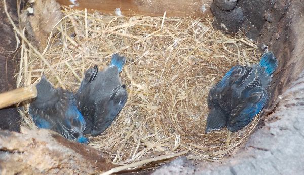 Et les merlebleus ont fait une deuxième ponte, dans le tout premier nid vu avant.