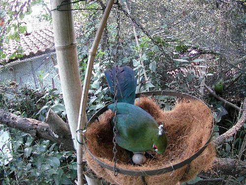 Une petite photo un peu volée, un Touraco qui replace ses œufs.
