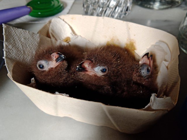Voici leur dernière couvée, il n'y avait pas assez de place dans le nid buche !