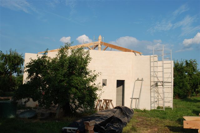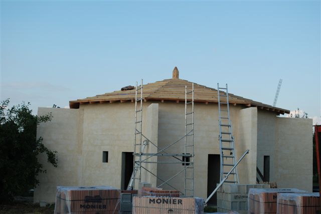 Le montage de la charpente a commencé hier. (un sacré boulot, chapeau au charpentier)...