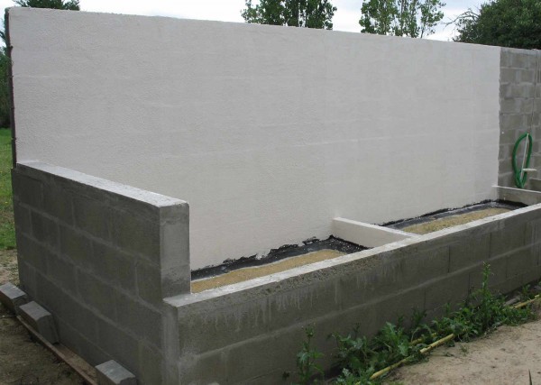 On y voit notamment la fabrication des « arases », c'est la petite épaisseur de béton que l'on coule au dessus des rangs de parpaings. Ca se fait en faisant un coffrage au dessus du dernier rang de parpaings que l'on rempli ensuite de béton (sable + gravier + ciment) ; le mélange doit être très riche en ciment.