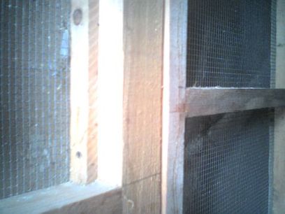 J'ai découper un chevron de la dimention , un liteau de la hauteur de la planche , une tige filtée avec un écou au bout , il servira a se que le liteu ne frotte pas le long du chevron du bas , la tige filtée sera fixé sur le liteau , ensuite la tige et enfilée dans les 2 chevrons par 2 trou de diamètre suppérieur de la tige pour qu'elle puisse tournée sans souci , puis la planche sera fixé sur le liteau , donc en poussant la planche la tige filtée tourne sur elle même et permet a la planche de tournée , le 1er verrou sert a se que la plache de revienne pas vers l'exterieur et le 2e sert a se qu'elle ne revienne pas de l'autre côté