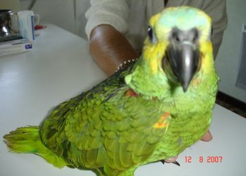 Virgie a écrit :...Comme il est bien connu qu'à  Grenoble, nous avons 2 spécialités, la noix et l'EAM, je suis heureuse de vous présenter "Cachou", amazone à  front bleu, né le 16 juin dernier à  24 h, oui j'ai bien dit "minuit", en couveuse...