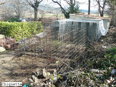 Oui....J'ai eu pour idée afin de faire une espèce d'armature, et surtout pour que le grillage ne fasse pas trop le "ventre" sur de grandes longueur, de prendre du treillis soudé que l'on utilise pour faire les dalles en béton.