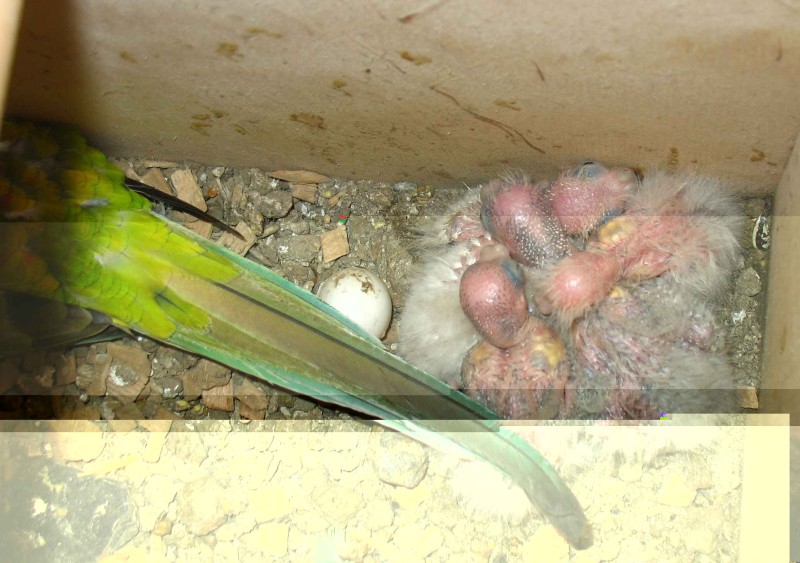 Les deux jeunes après leur deuxieme mue ont sorti quelques plumes rouges.
