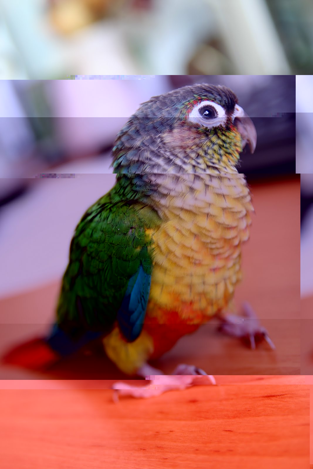 Je voudrais vous présenter Kenzo, ma conure de molinae. C'est un mâle d'un peu plus 4 mois.