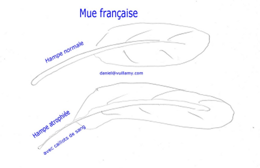 Présomptions de Mue française , si les plumes tombées sont comme sur le croquis ci-dessous , mauvaise limonade .