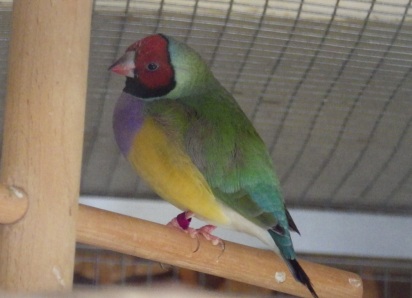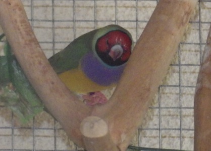 Voici 2 photos de la femelle gould tête rouge, fin de mue juvénile.