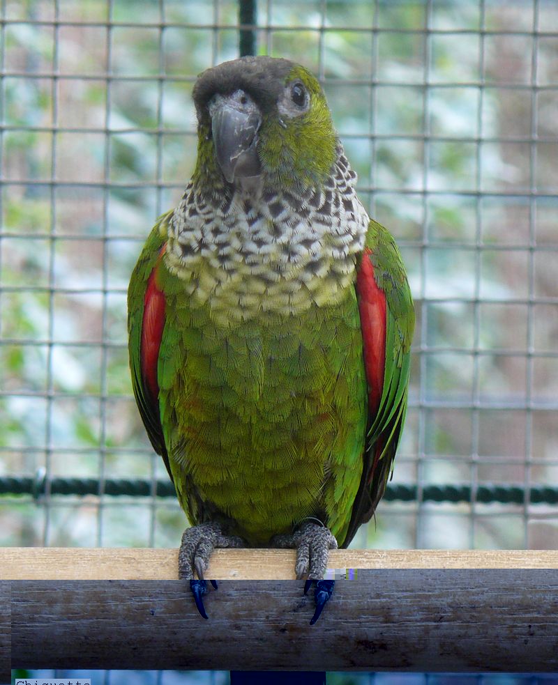 et en plus des bordures blanc plus étroites sur les plumes de la nuque et du poitrail, en particulier sur l'arrière du cou où elles sont presqu'absentes