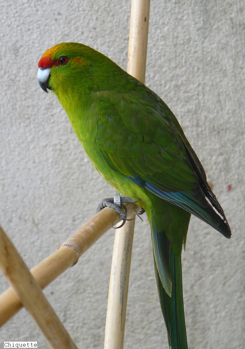 :arrow: Chiquette : Je ne serais pas si catégorique que Yves Lucas. Il faut savoir que les Kakarikis, il existe le Kakariki à  Front Orange ( Cyanoramphus malherbi ) qui avait décrite comme une espèce à  part entière ( au même titre que le Front Rouge et le Front Jaune). Mais dans les références de Thomas Arndt, auteur du Lexicon of Parrot, il stipule que le Front Orange serait en fait une variante ( voir même une sous-espèce) du Front Jaune. Donc, ta femelle qui présente une front orangé, est en fin de compte une Front Jaune avec des ancêtres de cette "sous-espèce".