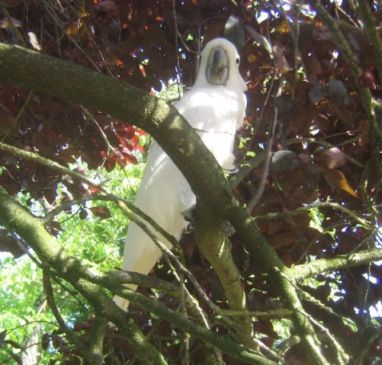 Lorsque je suis retourné à  la pièce pour sortir mon petit Ara Sévère (qui s’est posté aussi) la voilà , Sparkle qui monte sur le perchoir « poste » dans l’attente de mon retour. J’en ai presque crié de plaisir, mais j’ai résisté. Calmement je suis allé vers sa cage, la fait monter sur ma main, et l’ai posé sur son perchoir de jeu, en donnant beaucoup d’éloges et un pignon de pin.
