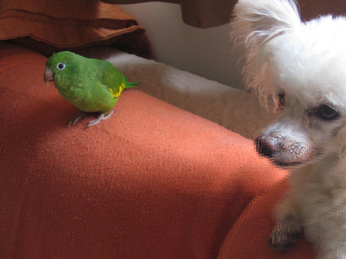 On les appelle "maritacas", c'est déjà plus grand, courant dans ma ville aussi et bien bruyant.