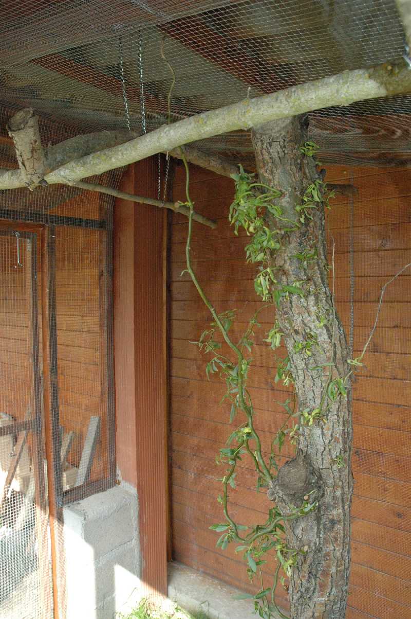 Lorsque je mettrai le grillage au sol je ferai des photos et par la même occasion je mettrai quelques photos de mes installations pour bien montrer que le bois n'est pas idéal lorsqu'on possède des crochus et même lorsqu'ils ont a porté de becs de nombreuses branches d'arbres. Il est toujours meilleur de grignoter ce qui est interdit. Côté becs droits, cela va mieux...... heureusement !