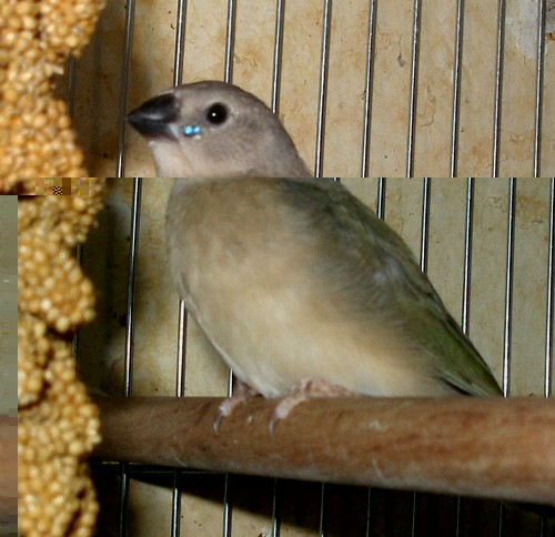 Sur celle-ci on voit nettement une différence de teinte . Ca grandit a une vitesse incroyable un des 2 a deja fait une sortie et s'est retrouvé en fond de cage :fou: