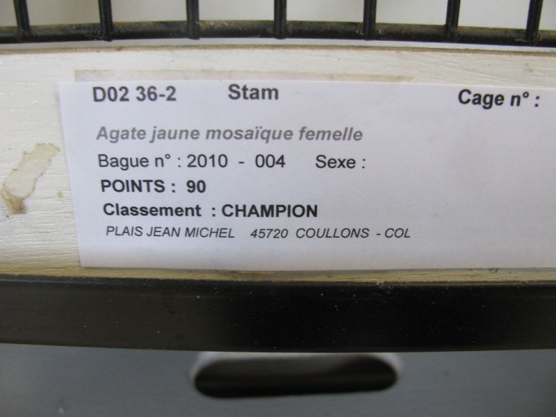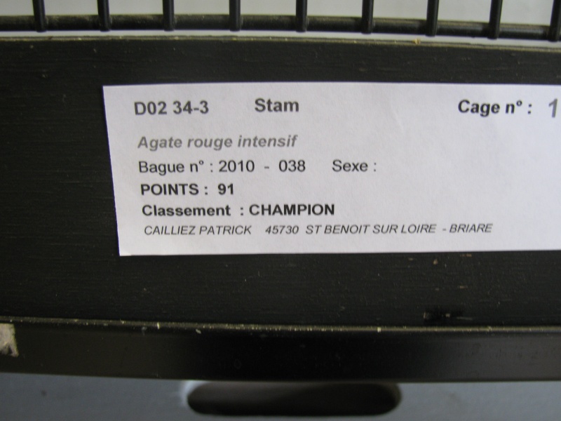 Me voilà  revenue avec une excellente nouvelle. Je suis comblée, j'ai eu un super cadeau d'anniversaire. Sur 11 oiseaux présentés : 8 CHAMPIONS et un 2ème.