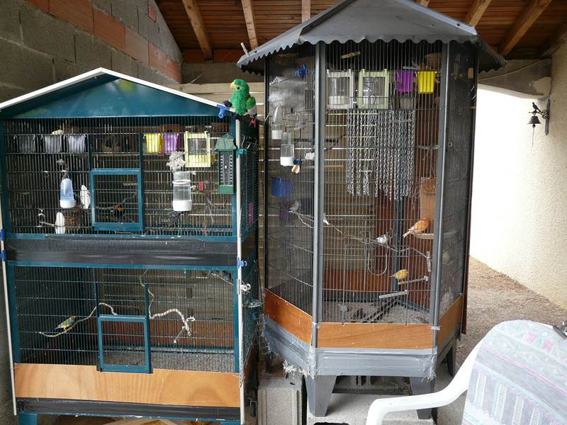Pour l’espace c’est peut-être là  qu’il y a le problème… Dans la cage grise (voir photo) il y a 4 couples de mandarin qui disposent au moins de 2 nids par couple et 4 canaris !