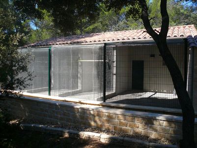 Pour répondre à  j-Paul concernant le grillage. J'ai mis des panneaux, comme pour une clôture rigide de couleur verte que l'on a l'habitude de voir. Même chose pour fermer le toit de la partie volière extérieure. En suite j'ai posé sur cette clôture du grillage 19X19 section 1,45.