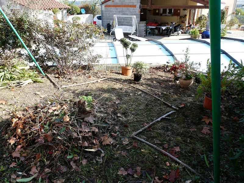 Pour l’instant, les tranchés ont été creusés (voir photo) et je suis en train de protéger le sol avec une bâche qui a la base empêche les mauvaise herbes… Afin de conservé quand même un sol naturel j’ai placé cette bâche à 20 cm de profondeur et recouvert de terre j’espère que ça suffira…