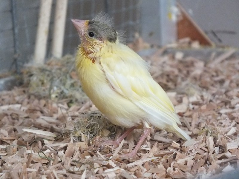 La mue est assez lente chez cet oiseau, ou en est au commencement. Il arrive, lorsqu'il y a un changement assez important de luminosité chaleur et humidité en même temps, que la mue se déroule rapidement et à  ce moment là , c'est quasiment toute la tête qui est couverte de canons . C'est assez impressionnant mais signe d'une belle et bonne mue. Le nombre devrait augmenter puis il va y avoir la mue de l'ensemble du corps de l'oiseau. Par contre, les canons resteront cachés sous les autres plumes et seront moins visible. Encore que, sur les flancs de ventre, cela se voit bien habituellement .