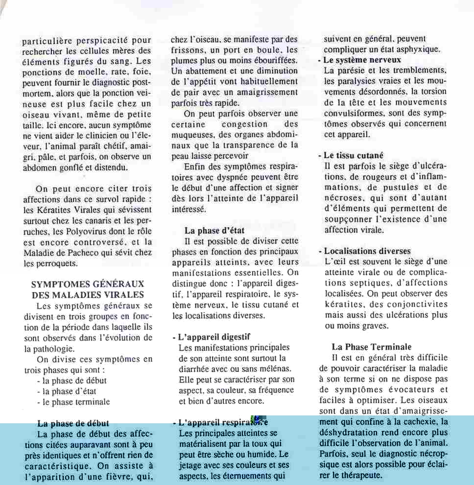 Je viens de reprendre un petit mémoire sur l'homéopathie. Il s'agit d'un texte du docteur vétérinaire qui avait publié cet article sur 6 pages dans "Le Monde Des Oiseaux" éditions de Août-Septembre et Octobre 1992.