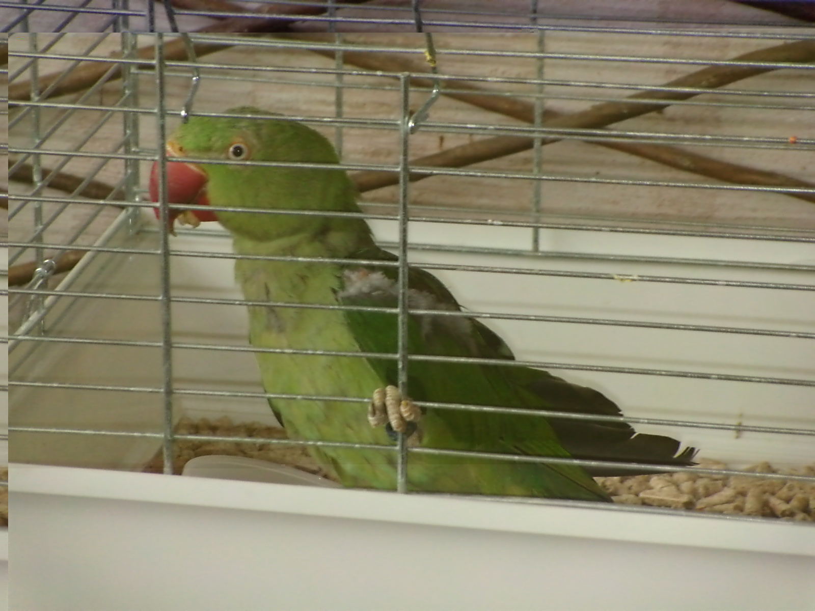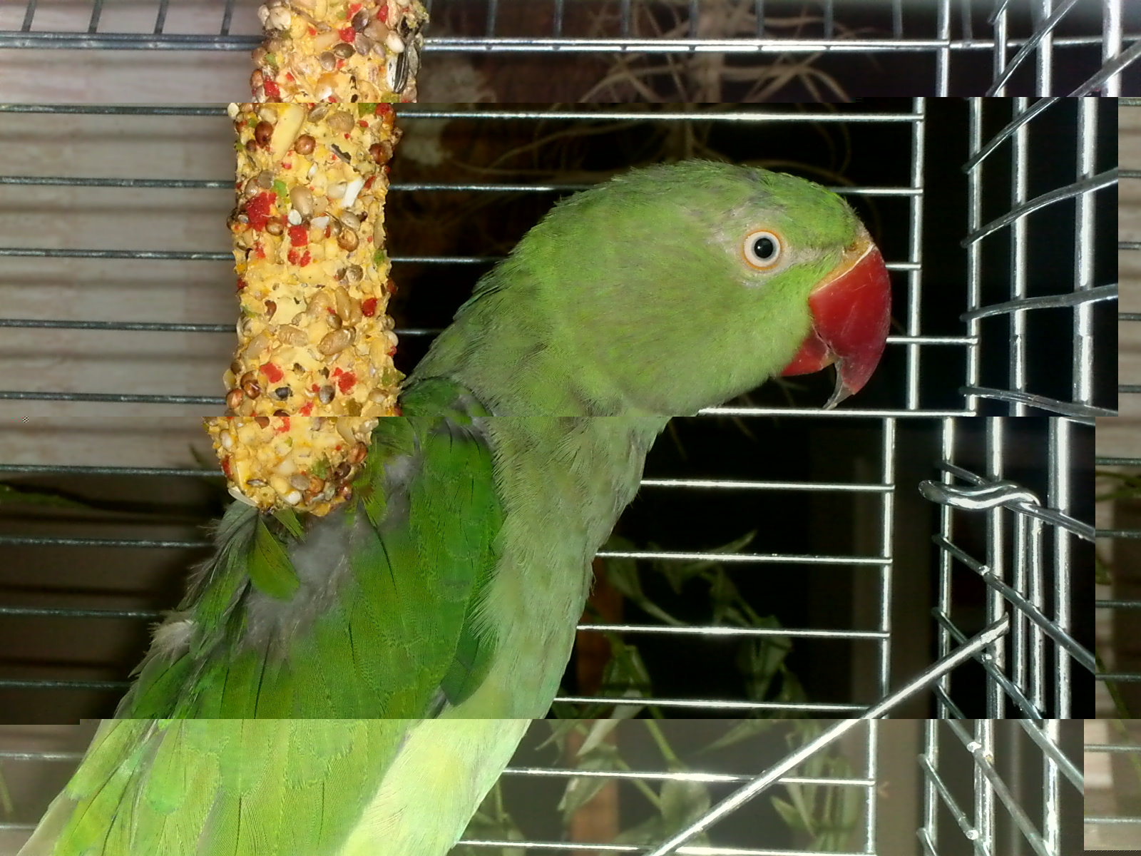 voici des nouvelles photos de mon protege ( il n arrete pas de manger, je lui ai mi un melange pour perroquet avec des fruit et des noix, je lui ai coupe une pome en quartier, et je lui ai donne quelques raisins secs)