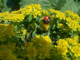 maintenant tout est pratiquement repoussé mais il n'a plus l'envie de faire de long vol ...il reste près de nous ... il est vrai "pot de colle", impossible de s'en défaire lorsqu'il est en dehors de sa cage ...