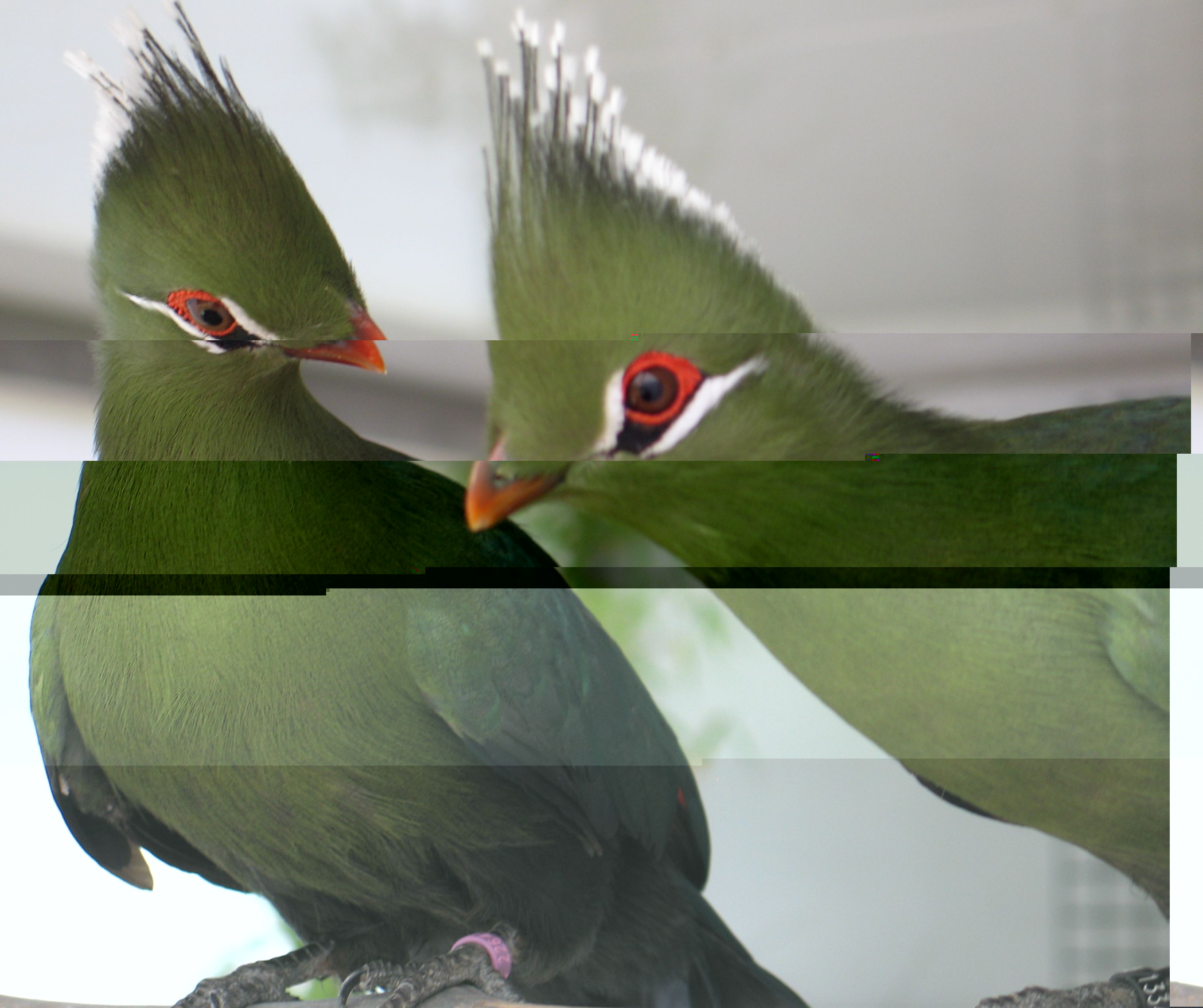 Je pense effectivement qu'ils sont en bonne santé, du moins leur plumage et leur vivacité le laisse penser. Je les nourris principalement au T16 et une pâté spéciale frugivore 1 jour sur 2 puis un mélange pommes-carottes une fois par semaine (ils adorent) et de l'eau fraîche à volonté que je renouvelle plusieurs fois par jour lorsqu'il fait chaud comme aujourd'hui.