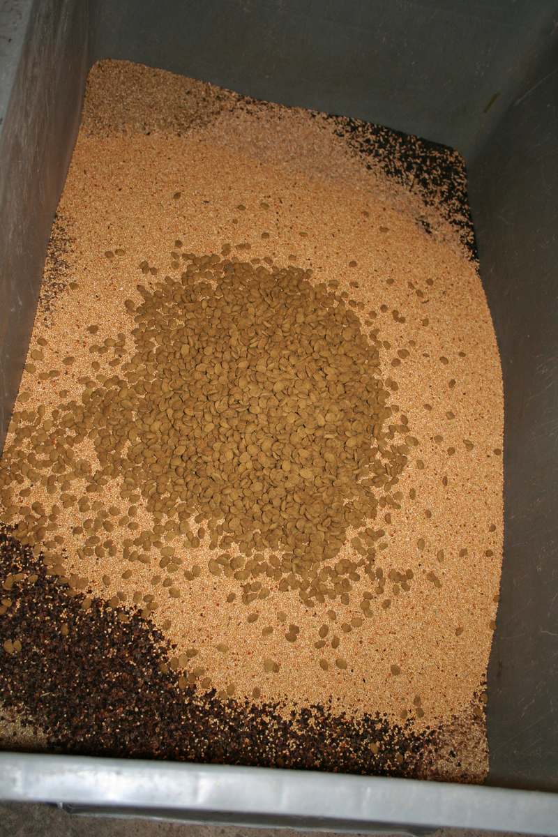 Le mélange présenté est dédié aux psittacidés (euphemes) en cette période (fin septembre) ce qui explique l'ajout de tournesol car les nuits commencent à être fraiches et on prépare donc l'hiver.