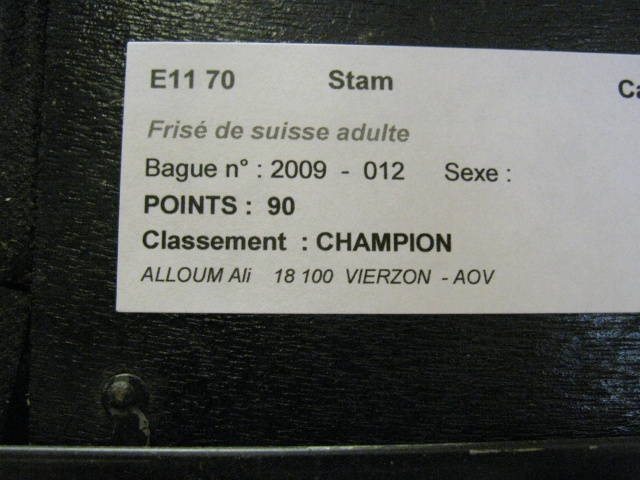 Me voilà  revenue avec une excellente nouvelle. Je suis comblée, j'ai eu un super cadeau d'anniversaire. Sur 11 oiseaux présentés : 8 CHAMPIONS et un 2ème.