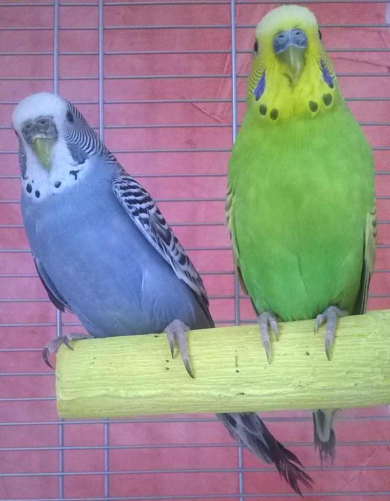 bonjour à  tous j'aimerai vous présenter mon couple de perruches ondulées titi (le male le vert) et blue (la femelle la bleu) :cool: