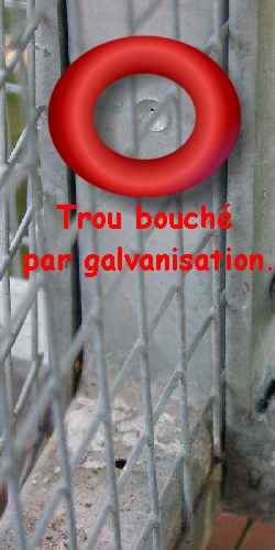 de zinc obstruait irrégulièrement les trous prévus pour les rivets ...